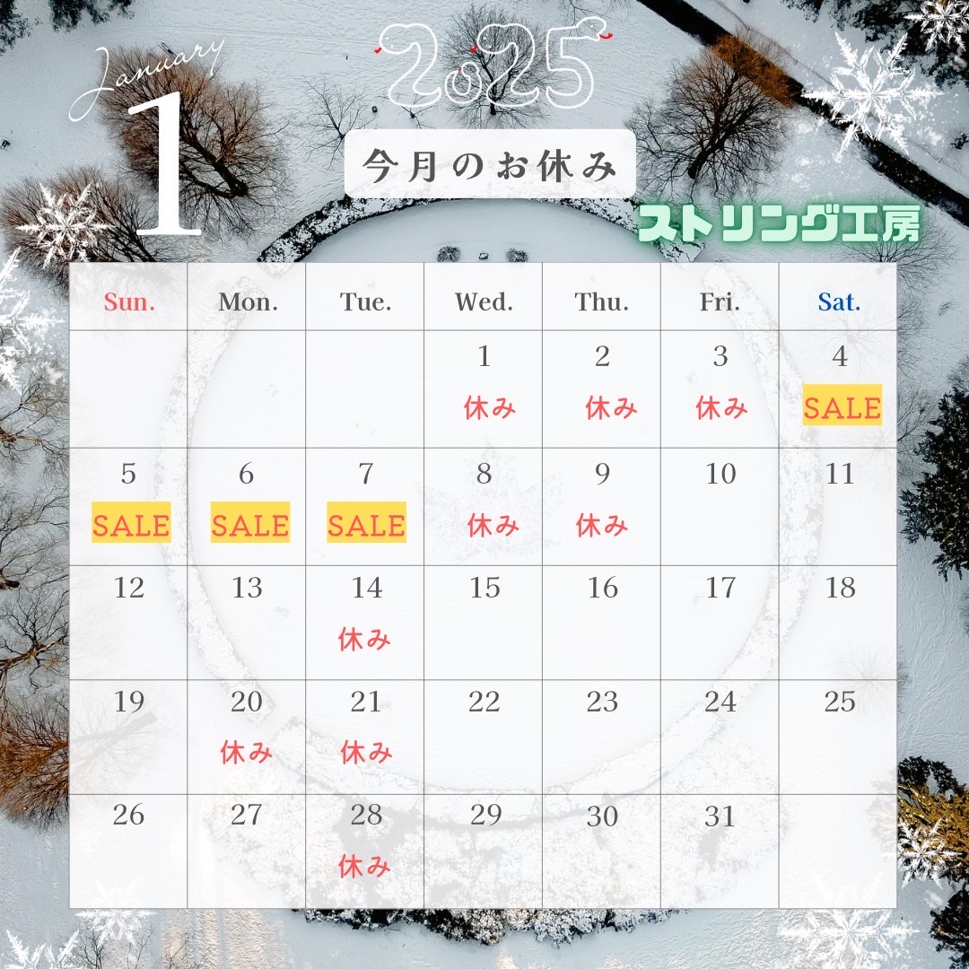 1月営業日のカレンダー 2025 2/03 未分類 2025年1月7日 未分類 お知らせ ゴーセン ストリング工房 ソフトテニス テニス バドミントン ミズノ ヨネックス 関連記事 ガット張り工賃価格改定のご案内 2026年1月29日 新春おみくじ2026 2025年12月31日 2025-2026年末年始大セール 2025年12月23日 技術講習会のご案内 2025年11月26日 11月3日イベント大抽選会結果発表 2025年11月12日 11/3張替えについてのご案内 2025年10月29日 11月2日、3日営業時間変更のお知らせ 2025年10月25日 11月3日イベント時大抽選会開催! 2025年10月25日