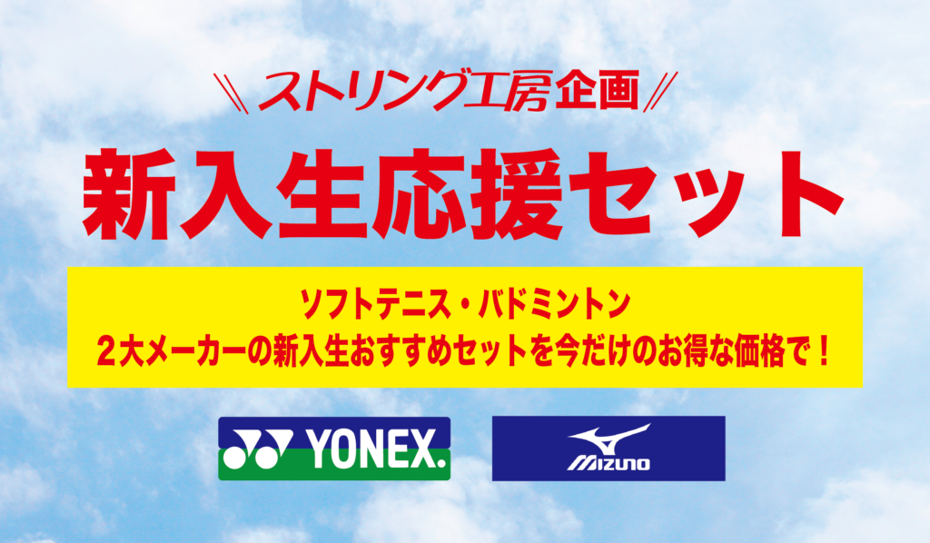 今年も新入生セット(ソフトテニス・バドミントン) お買い得スターターセットを販売します!! 店頭にご来店で"シューズのサイズ"の選び方などご不明点もご案内できます。 ぜひお立ち寄りください!!